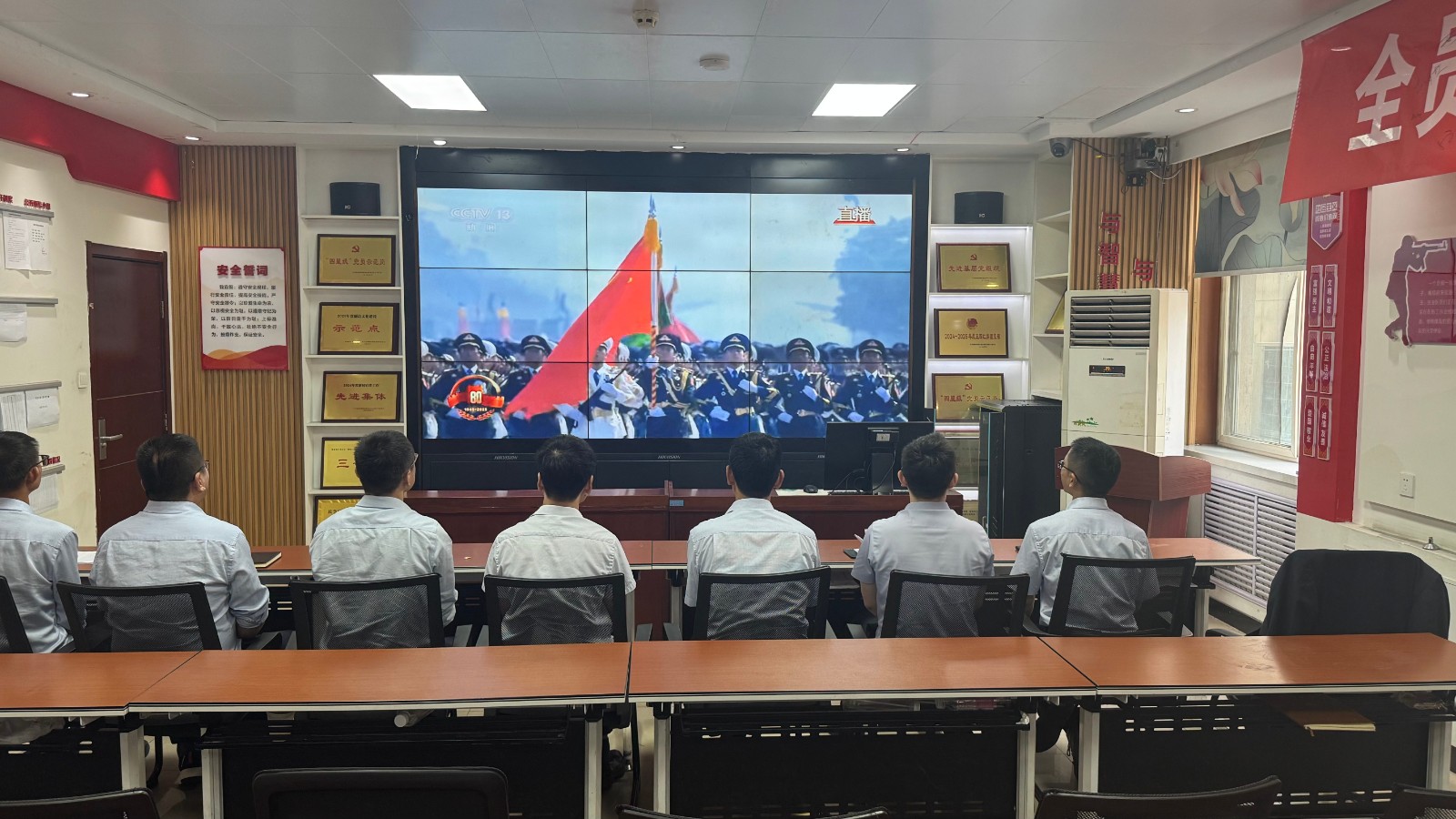 歷史燭照未來,精神永續(xù)傳承。為深切緬懷在抗日戰(zhàn)爭中英勇獻身的革命先烈,大力弘揚偉大的抗戰(zhàn)精神,引導全體黨員、職工銘記光輝歷史、堅定理想信念、強化責任擔當,9月3日,機運工區(qū)黨支部組織開展了“銘記歷史偉業(yè),傳承紅色基因”主題黨日活動,組織全體黨員集中觀看紀念中國人民抗日戰(zhàn)爭暨世界反法西斯戰(zhàn)爭勝利80周年閱兵儀式現(xiàn)場直播。上午九時整,機運工區(qū)全體黨懷著無比崇敬與激動的心情,目光齊聚屏幕。伴隨著激昂雄壯的國歌奏響,鮮艷的五星紅旗在天安門廣場冉冉升起,大家心潮澎湃,肅然起敬。隨后,規(guī)模宏大、氣勢磅礴的閱兵式正式開始。屏幕上,一個個整齊劃一、威武雄壯的徒步方隊,邁著鏗鏘有力、撼人心魄的步伐走過檢閱臺,堅毅的眼神、挺拔的身姿,充分展現(xiàn)了新時代軍人聽黨指揮的忠誠品格和能打勝仗的過硬本領;一列列代表著國家科技實力與國防現(xiàn)代化建設最新成果的裝備方隊,鐵流滾滾,氣勢如虹,尖端武器依次亮相,彰顯了捍衛(wèi)國家主權、安全、發(fā)展利益的堅定決心與強大能力;雄鷹呼嘯,劃破長空,戰(zhàn)機編隊以精準的隊形和磅礴的氣勢接受檢閱,描繪出壯美的藍天畫卷,宣示著捍衛(wèi)國家領空安全的鋼鐵意志。整個閱兵過程,秩序井然、威武雄壯、氣勢恢宏,生動詮釋了人民軍隊“聽黨指揮、能打勝仗、作風優(yōu)良”的強軍目標,全方位展示了在黨的堅強領導下,國家日益強大的綜合國力和維護世界和平的堅定信念。屏幕前,黨員們?nèi)褙炞?,無不被這震撼人心的場面所感染,民族自豪感與榮譽感油然而生,現(xiàn)場不時響起由衷的贊嘆和熱烈的掌聲。通過本次“銘記歷史偉業(yè),傳承紅色基因”主題黨日活動,機運工區(qū)黨支部全體黨員經(jīng)歷了一次深刻的精神淬煉與思想升華。大家的歷史使命感、民族自豪感、崗位責任感得到顯著增強,紛紛表示以更加飽滿昂揚的精神狀態(tài)、更加求真務實的工作作風、更加開拓創(chuàng)新的進取意識,恪盡職守,銳意進取,全力以赴保障原煤運輸安全高效,為工區(qū)及公司的持續(xù)高質(zhì)量發(fā)展貢獻全部力量!